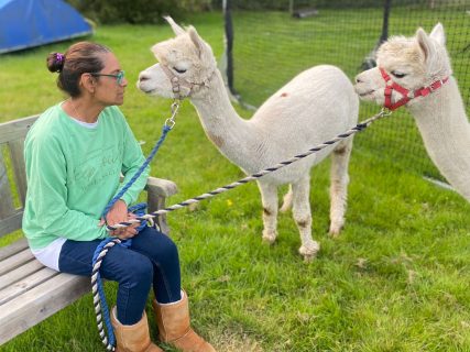 I use my assistant therapists, Pippin and Nugget, during my walk and talk sessions. Alpacas have a really great calming effect on people and their happy smiles are quite contagious. Their smells can release endorphins to promote better mood. Their hums pass a relaxing vibration to their handlers. Pippin and Nugget used to visit care […]